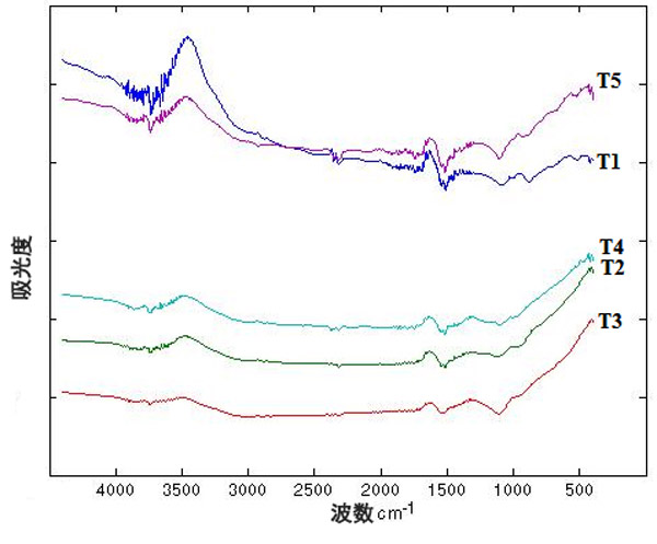 根據(jù)圖3,不同的處理導(dǎo)致熱分解曲線有所不同。此外,不同處理的殘留質(zhì)量也有所不同,處理T1,T4和T5呈現(xiàn)更高的殘留質(zhì)量,表明這些處理具有更高的耐熱性。處理T2和T3的殘留量較低,表明處理的耐熱性較低。此外,這些處理在后期殘留質(zhì)量之間存在重大差異而脫穎而出。根據(jù)處理(電擊時(shí)間),降解曲線的差異可能與表面上不同官能團(tuán)的存在有關(guān)。在熱過(guò)程中,由于存在的官能團(tuán),會(huì)形成不同的產(chǎn)物,從而導(dǎo)致更高或更低的質(zhì)量損失,因?yàn)榛钚蕴康臒岱纸夥磻?yīng)了其表面上官能團(tuán)的存在。然后,官能團(tuán)的類型和數(shù)量都會(huì)影響熱重曲線。但是,由于表面官能團(tuán)的降解與其結(jié)構(gòu)不同,因此官能團(tuán)的類型具有更大的影響,并且可以解釋處理之間的差異。