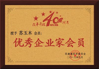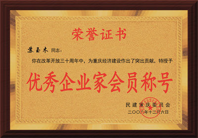 優(yōu)秀企業(yè)家會員稱號(民建重慶市委員會2008.12.6)