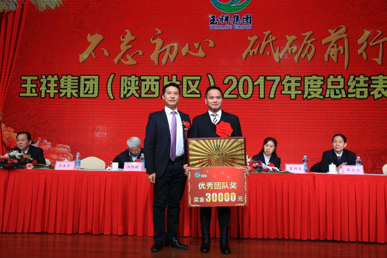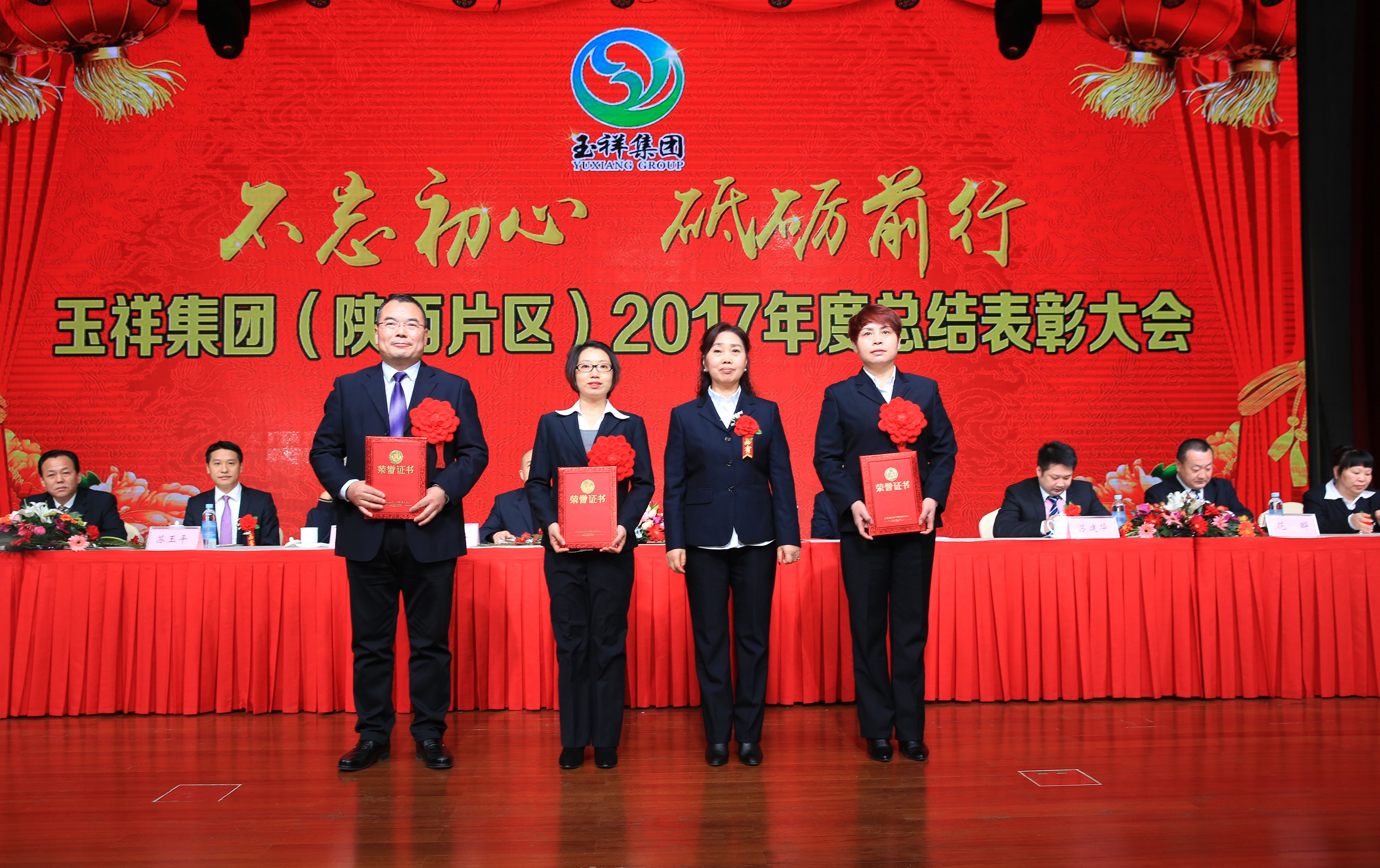 會議表彰了玉祥集團(tuán)陜西片區(qū)2017年度“優(yōu)秀黨員”、“優(yōu)秀員工”、“先進(jìn)集體”、“特別嘉獎的個人和集體”。受表彰的先進(jìn)集體和優(yōu)秀員工代表分別從不同角度介紹了他們的先進(jìn)事跡,并表示:在新的一年里,充分發(fā)揚(yáng)愛崗敬業(yè)、樂于奉獻(xiàn)的精神,在工作中找準(zhǔn)自己的位置,在拼搏中實(shí)現(xiàn)自我的價值。