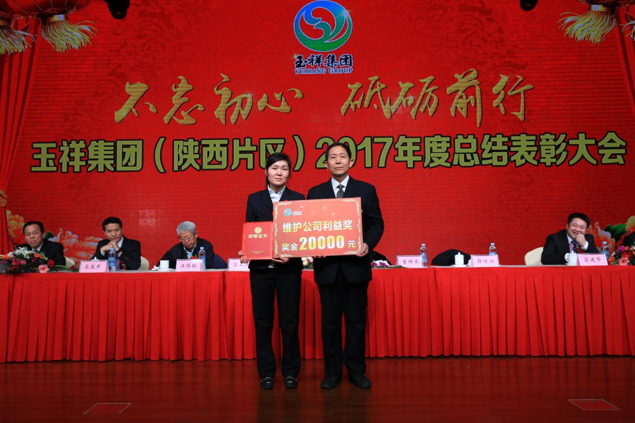 玉祥集團(tuán)黨委書記、副董事長曾祥蘭頒發(fā)“最佳效益獎”
