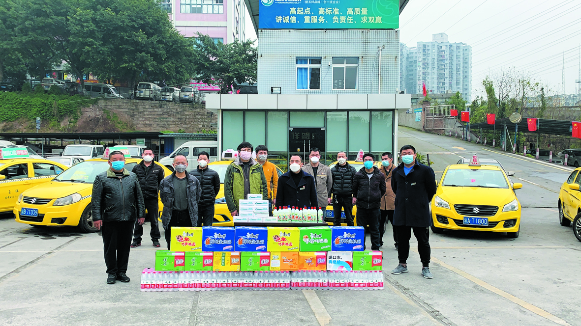 為出租車駕駛員發(fā)放防護(hù)口罩、消毒液及生活物資