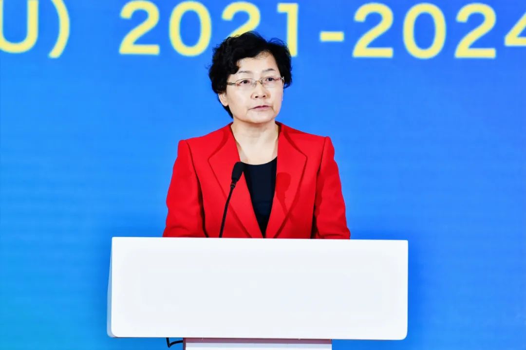 北京市燃?xì)饧瘓F(tuán)有限責(zé)任公司黨委書記、董事長,中國城市燃?xì)鈪f(xié)會執(zhí)行理事長,國際燃?xì)饴?lián)盟(IGU)2021-2024年主席李雅蘭發(fā)表題為《把握機(jī)遇 應(yīng)對挑戰(zhàn) 推動燃?xì)庑袠I(yè)高質(zhì)量發(fā)展》的主旨演講。