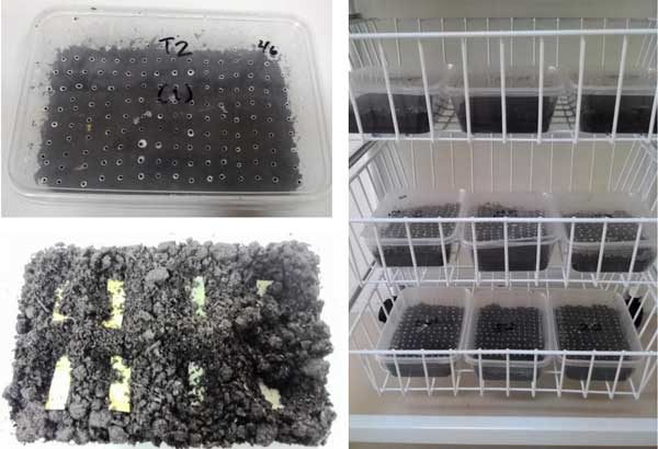 含活性炭和不含活性炭的纖維紙被切成3厘米x1厘米的條。這些紙在75℃下干燥48小時,干燥后的重量計算為初始干重。將紙張放入裝有堆肥土壤的塑料容器中,該土壤由農(nóng)業(yè)產(chǎn)業(yè)生產(chǎn)的堆肥生活垃圾制成,濕度為45%,并用多孔蓋子蓋住。試驗組由12次重復組成,觀察12周,間隔4周(3次采樣)。采樣時間表示為T1、T2和T3。初始條件表示為T0。在取樣時,取出紙片并用軟刷清潔。土壤中生物降解試驗的描述如圖1所示。