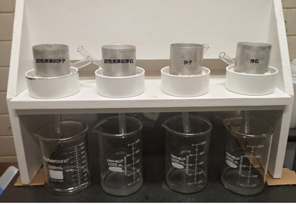 主要的多孔介質(zhì)(圖1)是市售的游砂和浮石,它們是相同的材料。游砂質(zhì)地細(xì)砂(97.5%沙子、1.8%淤泥和0.7%粘土,根據(jù)比重計(jì)法),而浮石的直徑大多大于2毫米;钚蕴渴琼n研出廠(chǎng)的,是本研究中摻入沙子或浮石柱的吸附活性炭。有關(guān)活性炭詳細(xì)信息,請(qǐng)聯(lián)系我們。