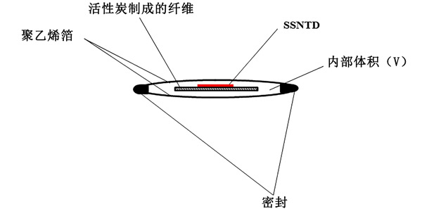 帶溫度補償?shù)幕钚蕴刻綔y器模塊設(shè)計如圖1所示。內(nèi)部傳感器使用活性炭吸附器和固體核徑跡探測器(SSNTD)。在本實驗中,使用了三種活性炭制成的纖維;钚蕴坑米麟笔占/散熱器,而SSNTD則檢測輻射量。補償模塊的壁由低密度聚乙烯或高密度聚乙烯箔制成。根據(jù)造型選擇箔的厚度和表面積,以達到合適的溫度補償。。當(dāng)探測器在探測器模塊外時,校準(zhǔn)系數(shù)為CF0。然而,當(dāng)探測器放置在其校準(zhǔn)因子內(nèi)時,平衡時將為CF =CF0.ρ,其中ρ是“穿透率”,即模塊體積內(nèi)空氣中的平衡時氡濃度與濃度的比值在它周圍的空氣中。CF0與吸附容量k成正比并且遵循與k相同的溫度趨勢,而CF與kρ成正比。正如在其他地方所指出的,穿透體積中壁的部分ρ隨著溫度的升高而增加,因此溫度的趨勢與k的趨勢相反。選擇氣體擴散通過的壁材、厚度、壁表面積和“補償模塊”的體積,以使kρ的溫度變化在應(yīng)用的溫度區(qū)間內(nèi)盡可能小。