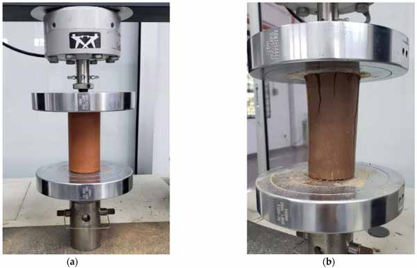 圖3:(a)活性炭試樣和(b)椰殼纖維試樣的UCS結果。