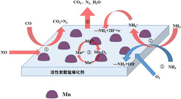 基于以上結(jié)果,我們提出活性炭載錳系列催化劑耦合低溫脫硝反應(yīng)過程。