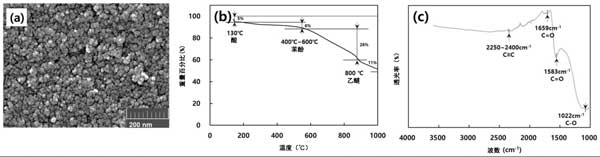 圖1:(a)掃描電子顯微鏡(SEM)圖像,(b)TGA重量百分比曲線(xiàn),以及(c)活性炭的光譜圖。