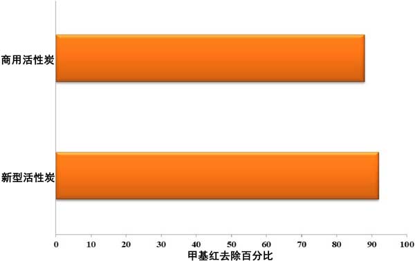 經(jīng)過批量吸附測試數(shù)據(jù)后,將新型活性炭的結(jié)果與當?shù)乜捎玫纳逃没钚蕴窟M行了比較。圖4表示與活性炭的比較實驗數(shù)據(jù)。
