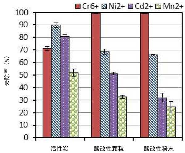 來自采礦活動、工業(yè)和城市廢物以及垃圾填埋場滲濾液的重金屬對地下水和地表資源造成嚴(yán)重污染。重金屬對水的污染可能來自不同的來源。Cd2+,Cr6+,Mn2+,Ni2+被引入到水資源和環(huán)境中的主要來源是廢家用電池和充電電池、電鍍、制革工業(yè)、化肥、石化產(chǎn)品和煉油廠廢水。本文研究了使用酸改性和未改性活性炭吸附從含有Ni2+、Mn2+、Cr6+和Cd2+的季銨鹽水溶液中競爭去除金屬離子的方法;钚蕴坑孟跛嵫趸暑w粒狀和粉末狀,并測試其對金屬離子從水溶液中的競爭吸附。