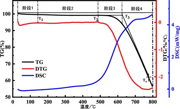 當溫度達到燃點T3時,樣品開始燃燒,進入燃燒階段,質量損失速度很快,并釋放出大量的熱量。