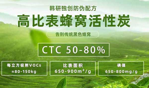 比表面積是指單位質量活性炭所具有的表面積。它是衡量活性炭吸附性能的重要指標之一。比表面積越大,活性炭的吸附能力越強,因為它能夠提供更多的表面積來吸附有害氣體或異味分子。一般來說,韓研的活性炭的比表面積可以達到900㎡/g以上,而普通活性炭的比表面積可能在100~600㎡/g之間。此外,除了比表面積之外,還需要關注其他參數(shù)指標如孔徑分布、孔容率等等。這些參數(shù)也會影響活性炭的吸附效果。只有選擇了適合自己需求的活性炭才能更好地發(fā)揮其吸附作用。因此,在選擇氣體處理活性炭時需要綜合考慮多個因素,如CTC值、比表面積、機械強度等等。只有選擇了適合自己需求的活性炭才能更好地發(fā)揮其吸附作用。