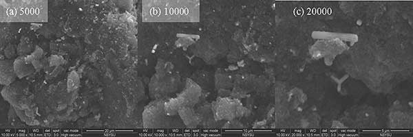 硫浸漬活性炭由大量微孔組成,高硫含量增強了活性炭對氯化汞的吸附能力。微孔通常具有大部分HgCl2吸附的活性位點,而大孔和中孔作為運輸路線。圖21顯示了分別放大5000,10,000和20,000倍的硫浸漬活性炭的ESEM圖像。如圖1所示,主要在活性炭表面發(fā)現(xiàn)大于500的大孔,中孔和微孔隱藏在活性炭內(nèi)部。在硫浸漬之后,硫分子可以擴散并沉積在活性炭的微孔上,并且可能堵塞過渡路徑。