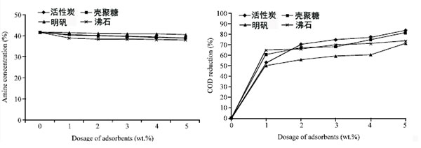 該單乙醇胺廢水含有許多類型的分子和離子。因此,某些分子和離子基于其特性被吸附到這些吸附劑表面上;钚蕴烤哂惺杷砻,有利于空氣中的有機物。同時沸石是親水性吸附劑。吸附劑的這些特性有助于降低COD水平。從結(jié)果可以看出,與活性炭和沸石相比,活性炭是降低COD水平的效果好的吸附劑。