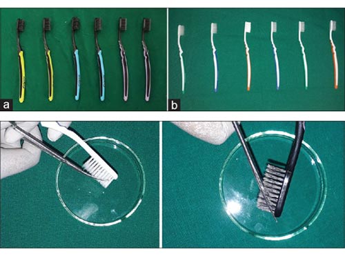 圖1:(a)活性炭牙刷。(b)非炭牙刷。切下刷毛并在分開的無菌培養(yǎng)皿上收集。