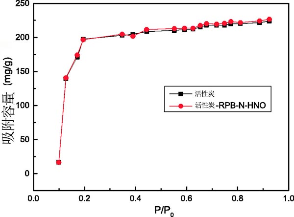 活性炭在高重力環(huán)境中的熱化合物改性。將100g活性炭作為填料層,并且以900r/min的速度操作300分鐘,其中99%氮氣從入口端口通過。得到的活性炭表示為活性炭-RPB-N。原始活性炭和活性炭-RPB-N用1mol·L-1HNO 3在70攝氏度,流速40L·min-1,轉(zhuǎn)速36.3Hz下進行改性。在該處理之后,在用去離子水沖洗后,將兩個樣品在真空烘箱中在110攝氏度下干燥24小時,并分別表示為活性炭-RPB-HNO和活性炭-RPB-N-HNO。