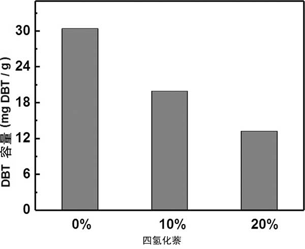 圖4.在具有不同質(zhì)量分?jǐn)?shù)的四氫化萘存在下活性炭對(duì)DBT的吸附容量。
