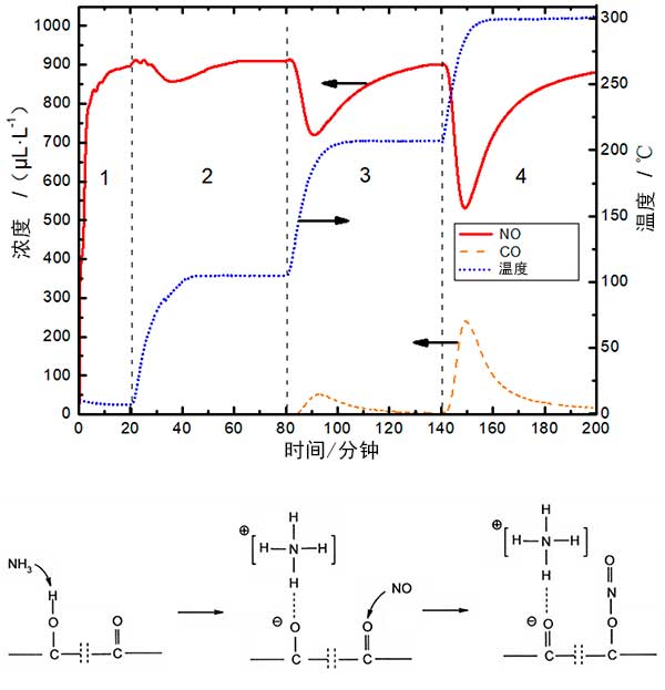 圖3:活性炭在NO/NH 3/N 2系統(tǒng)中的作用,在活性炭表面上NO還原與NH 3的反應(yīng)機(jī)理。