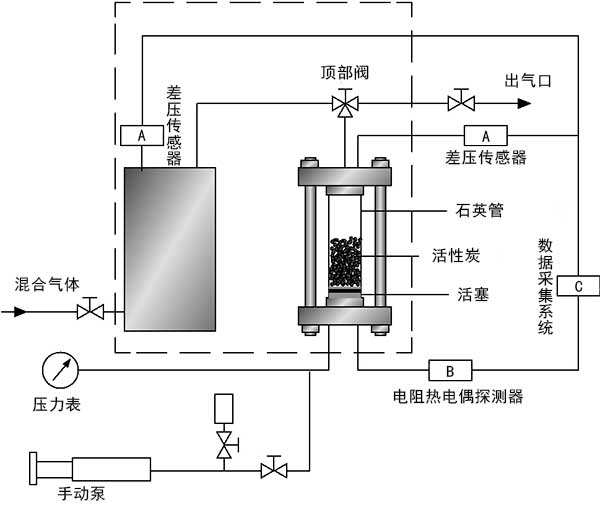 實驗材料使用氫氣(99.99%)和二氧化碳(99.99%)。在實驗室中制備兩種不同比例的氣體混合物作為原料氣。通過兩步分離過程觀察不同比例的混合氣體和活性炭分離性能的分離性能差異。通過氣相色譜儀分析進料氣體和平衡氣體的組成。在實驗之前,將活性炭樣品在100℃的真空干燥箱中干燥至恒重。