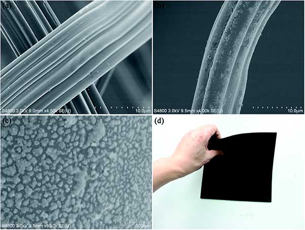 圖2:活性炭復合材料纖維的SEM和實物圖。
