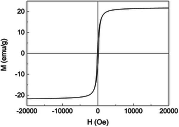 活性炭復合纖維材料在室溫下-20000至20000 Oe范圍內的磁滯回線在圖3顯示,其形狀是典型的S曲線,對應于超順磁行為。包括飽和磁化強度Ms,磁矯頑力HC和剩余磁化強度Mr的磁特性;钚蕴繌秃喜牧系腗s低于塊狀Fe3 O4,這可以通過活性炭載入Fe3O4納米粒子來解釋,這與發(fā)現的結果非常一致。