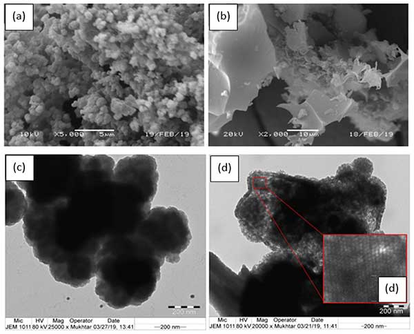 圖1:活性炭和聚吡咯的掃描電子顯微鏡和透射電子顯微鏡。