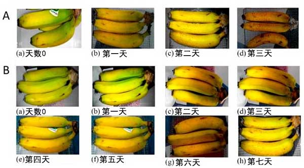 圖3:在相同條件沒有活性炭(A)和在活性炭(B)存在下的情況保存試驗(yàn)中的水果。
