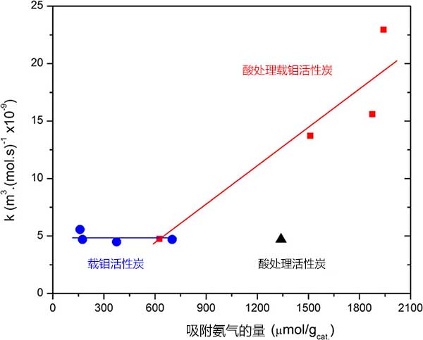 3:活性炭吸附的氨氣與第二級酯化反應(yīng)速率常數(shù)之間的相關(guān)性。