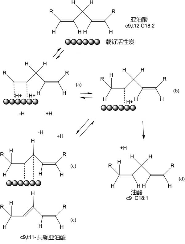 圖4:亞油酸異構(gòu)化和氫化的機(jī)理。