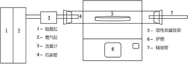 將三種棕櫚廢物預處理的樣品碳化并通過一步法在700℃下在氬氣流下使用管式爐以10℃/min的加熱速率活化。當達到700℃的設(shè)定溫度時,以5L/min的流速代替氮氣的氬氣流,以活化1小時的保持時間。圖2顯示了一步物理活化的實驗裝置的示意圖。然后使樣品冷卻并儲存在密閉容器中以避免孔吸附大氣氣體。