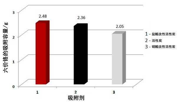 圖1.:活性炭的類型對六價鉻吸附容量的影響。