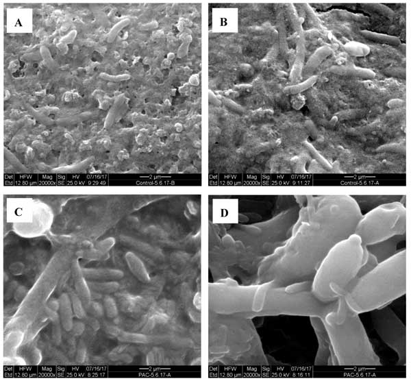 圖3:活性炭添加膜生物反應(yīng)器實(shí)驗(yàn)結(jié)束時(shí)結(jié)垢膜的SEM成像。