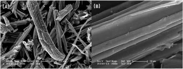 原材料用去離子水沖洗并干燥。然后在破碎機(jī)中破碎。重復(fù)破碎后,將破碎的原材料堆通過(guò)50和100目篩。將篩過(guò)的原材料粉末在氮?dú)鈿夥障略诓煌瑴囟?300.0 °C至1000.0 °C)下煅燒。加熱速度為5.0 ℃ min -1,目標(biāo)溫度維持 180min。溫度上升后;然后將樣品自然冷卻至室溫。將烘干的活性炭浸入10%的鹽酸中12 h,用水洗滌3次,并在100.0 °C下干燥6 h制成。研發(fā)的活性炭與商業(yè)活性炭相比,具有更高的表面積和孔體積。圖1 顯示了活性炭的掃描電子顯微照片。由于高溫煅燒,活性炭具有不規(guī)則的棒狀結(jié)構(gòu),在其表面上具有皺紋,這提供了較大的表面積并增加了活性炭表面的吸附位置。