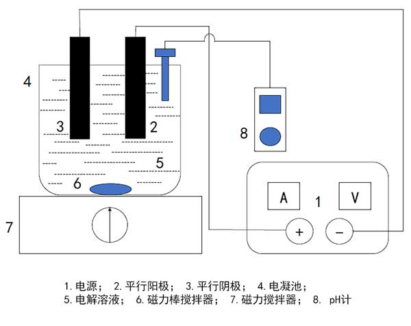 圖1:活性炭測(cè)試中的電凝設(shè)備。