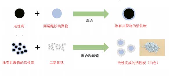 圖1:二氧化鈦改性活性炭的示意圖。